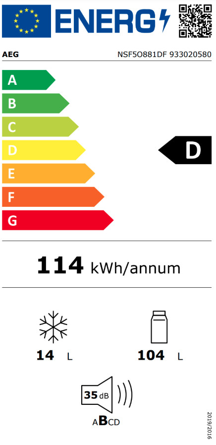 AEG NSF5O881DF Beépíthető hűtőszekrény | CoolMatic | 124l | 88 cm magas | 56 cm széles