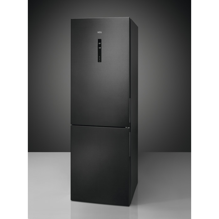 AEG RCB732E7MB Szabadonálló kombinált alulfagyasztós hűtőszekrény | NoFrost | CoolMatic | FrostMatic | TwinTech | MultiFlow | 230/94 l | 186 cm magas | 59.5 cm széles | Fekete inox