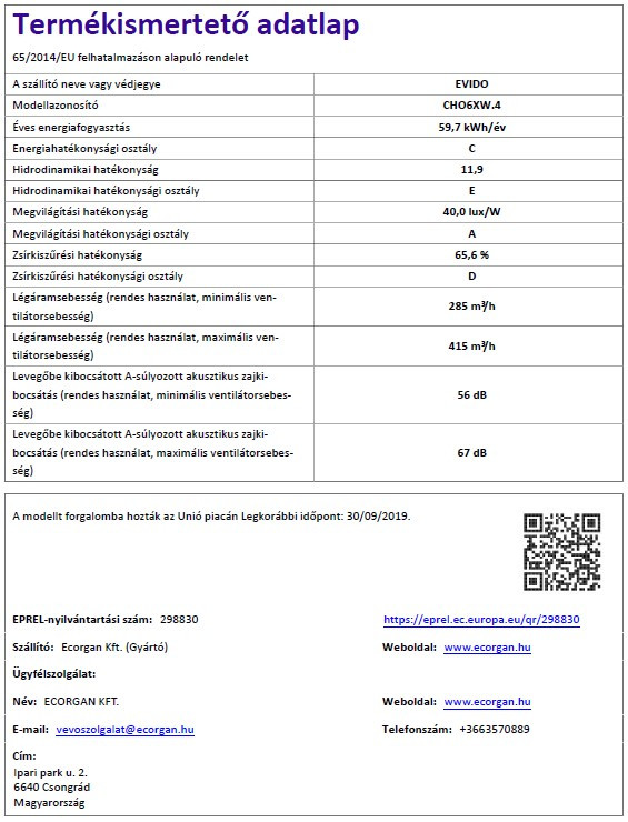 • Szabvány szerinti légszállítás (IEC): max. 285-415 m3/h