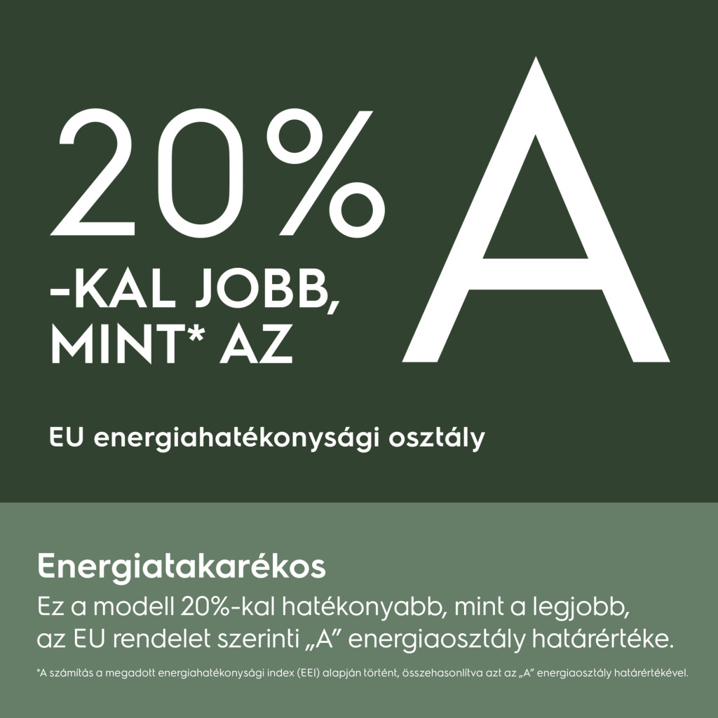 • Súlyozott energiafogyasztás / 100 ciklus (kWh): 39