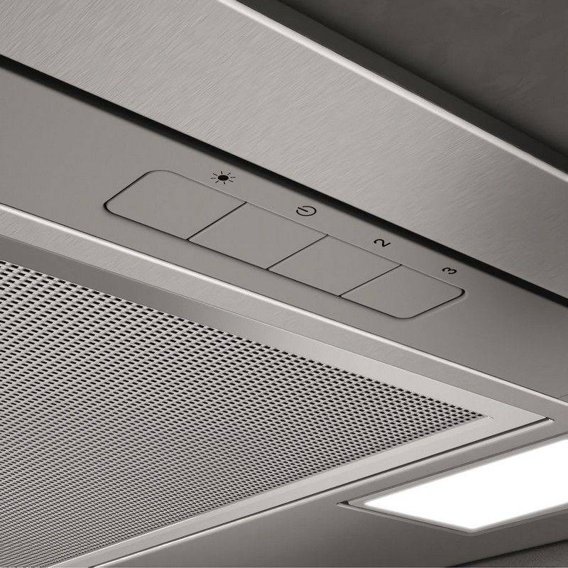 A készülék nyomógombos vezérléssel rendelkezik, amely egyszerű és megbízható működtetést biztosít. A kezelőpanel segítségével könnyedén válthatunk a három elszívási fokozat között, illetve külön kapcsolható a világítás is. Az áttekinthető gombelrendezés gyors és praktikus használatot tesz lehetővé a mindennapokban.
